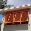 Ask us about our NOA approved hurricane Bahama shutters with articulating louvers as well as Bahama shutters available in 4 simulated woodgrain powder coatings.